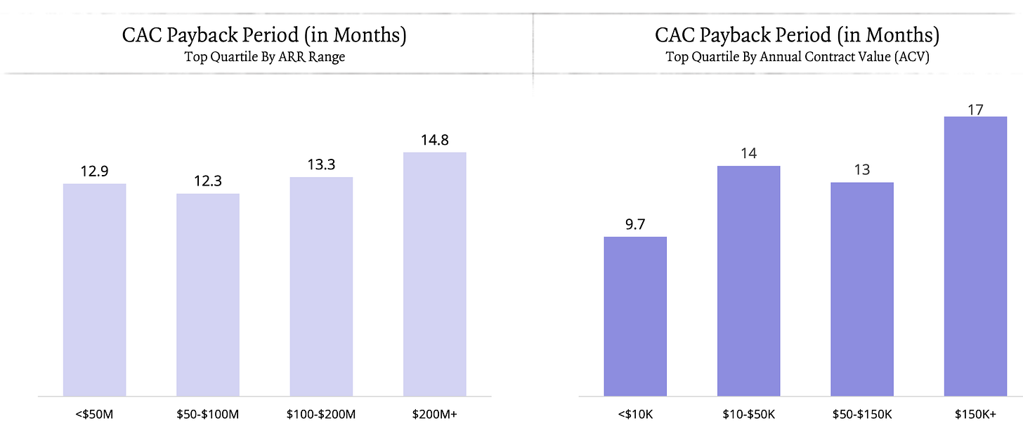 Private companies: might have a slightly lower median, but still high. Below are the top-quartile payback periods of a top-decile firm (ICONIQ)