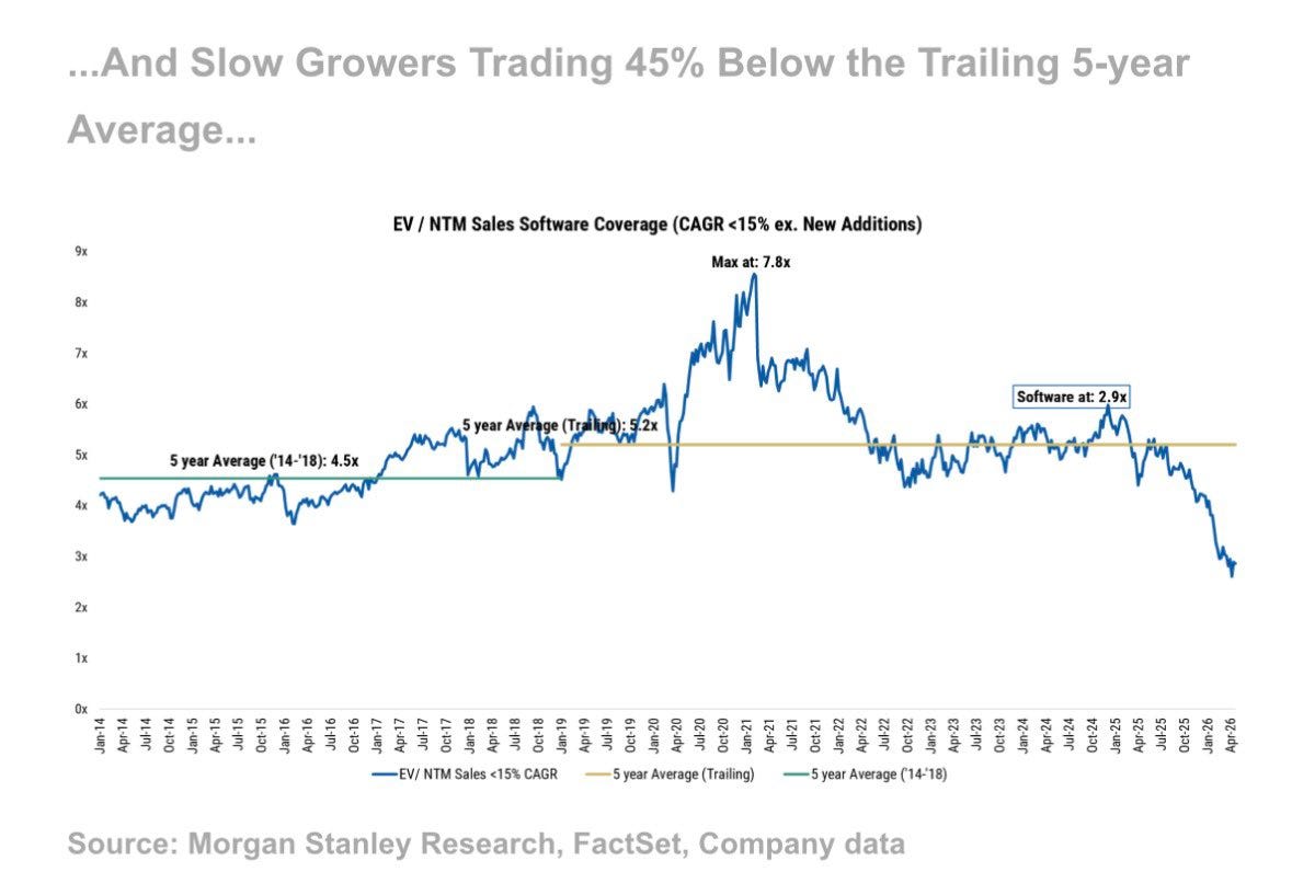 As I discussed in my last post, investors are assuming slow growth means AI is destroying their business, so it has zero terminal value now. And the valuation multiples reflect that…