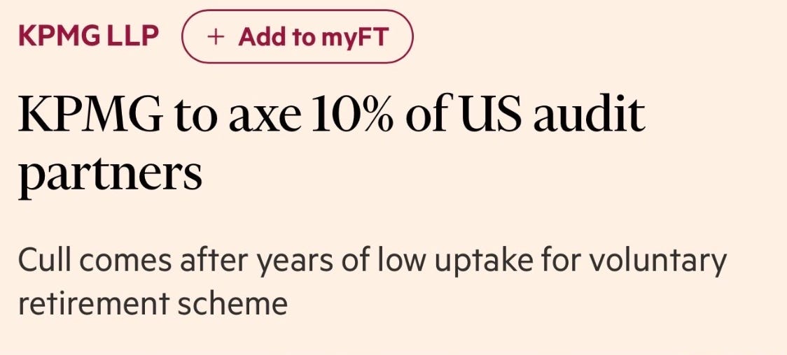 And KPMG just fired 10% of their US audit partners.