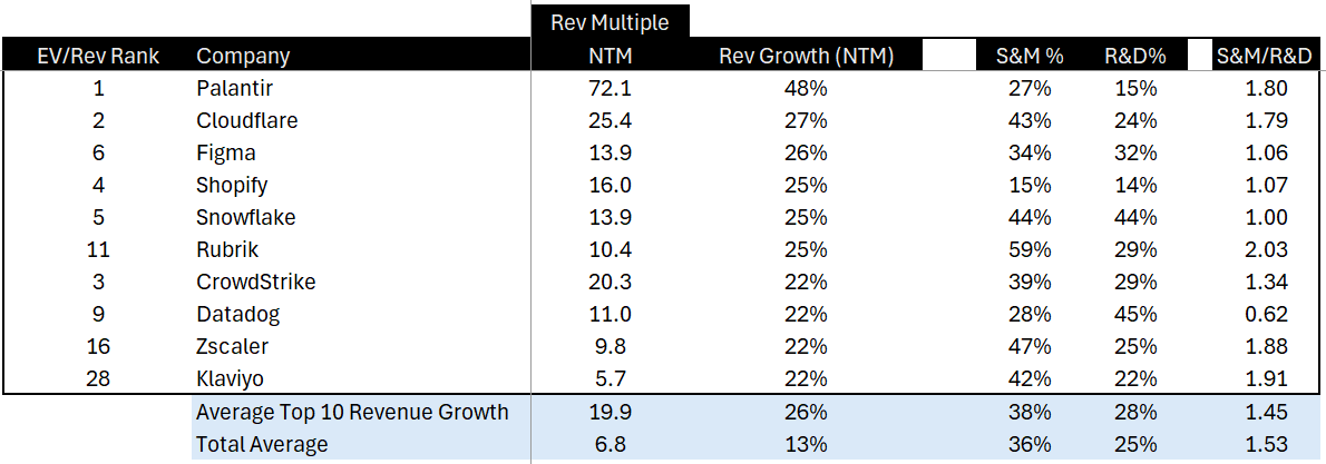 There is a similar story for the companies with the highest revenue growth. Even more is spent on S&M relative to R&D.