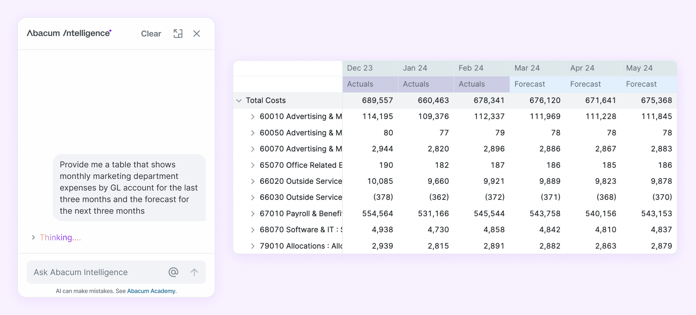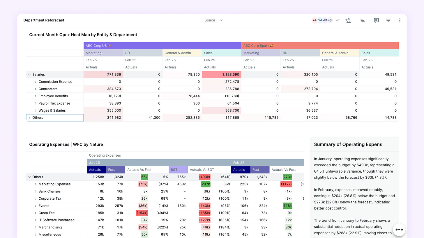 AI is helping both sides (accounting and finance) to ensure proper classification and tagging for reporting. You can use AI to more easily dive deeper (with written explanations or detailed data) in your budget vs actual review.