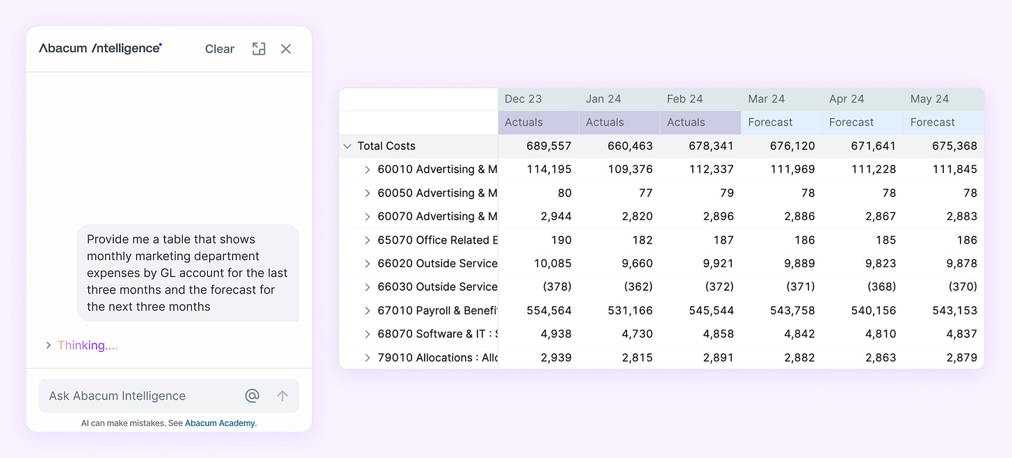 I ask my team to regularly take demos from AI vendors to learn what has changed. Talk to my friends at Abacum and make them get you smarter on how you might leverage AI in FP&A 😎