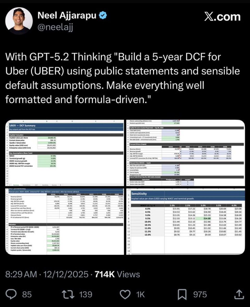 In a viral (and later deleted) Twitter/X post, an OpenAI employee posted what he thought was a great valuation model of Uber that was performed by their newly released ChatGPT model.