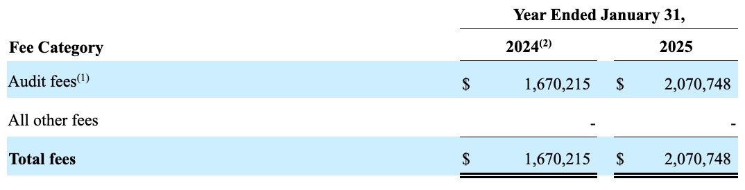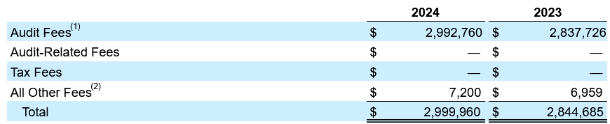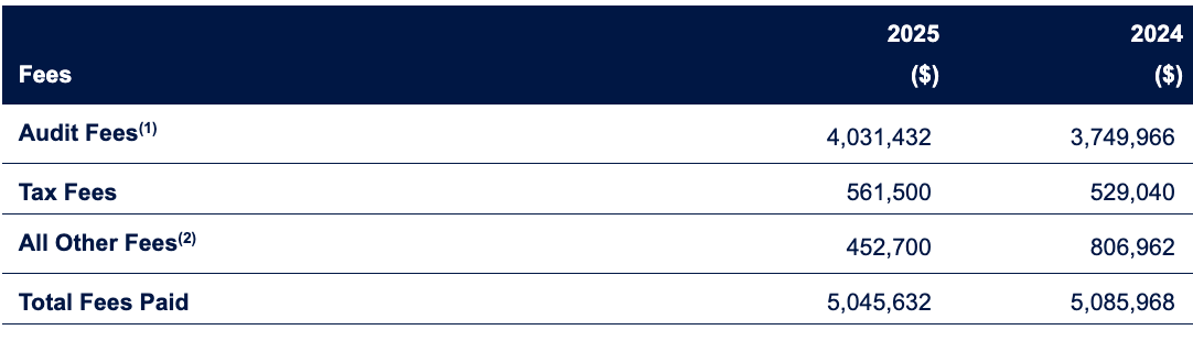 KPMG reportedly threatened to change auditors if they didn’t reduce their fees. And it looks like KPMG’s tactics worked. Fees paid for KPMG’s 2025 audit decreased by 14% from the prior year ($416K to $357K).