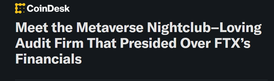 But there is a big difference between a 2nd tier audit firm and the auditors that FTX chose…FTX’s auditor prided themselves on being the first audit firm to open a HQ in the metaverse lol. How auditors miss billions of dollars in an audit is beyond me…