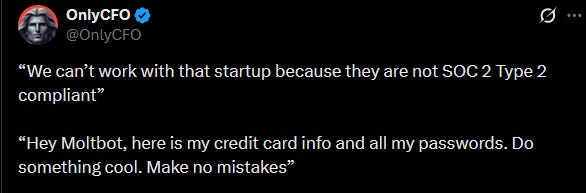 I tweeted the below somewhat jokingly, but was also very confident that some huge security concern would come from Moltbook.