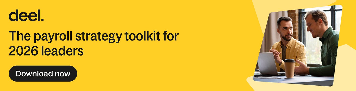 Great read: Payroll Strategy Toolkit. My friends (and today’s sponsor :) at Deel wrote the playbook for how payroll should work in 2026.
