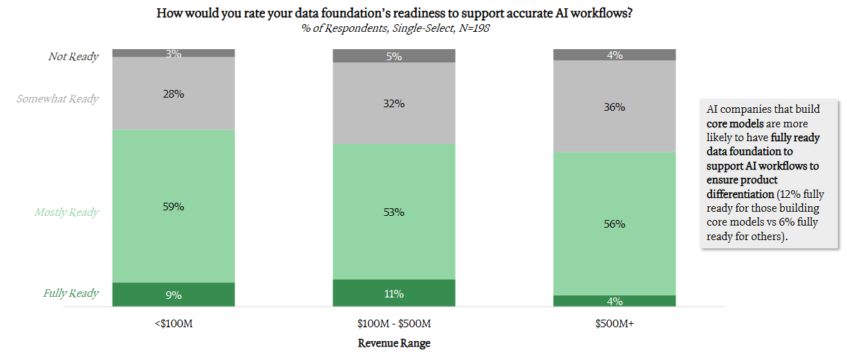 Companies with bad data and processes need to have a 2026 (or even H1 2026) goal to fix their issues. Otherwise you will get left behind. Honestly this is most companies. The “mostly ready” bucket below are mostly just the optimistic companies.