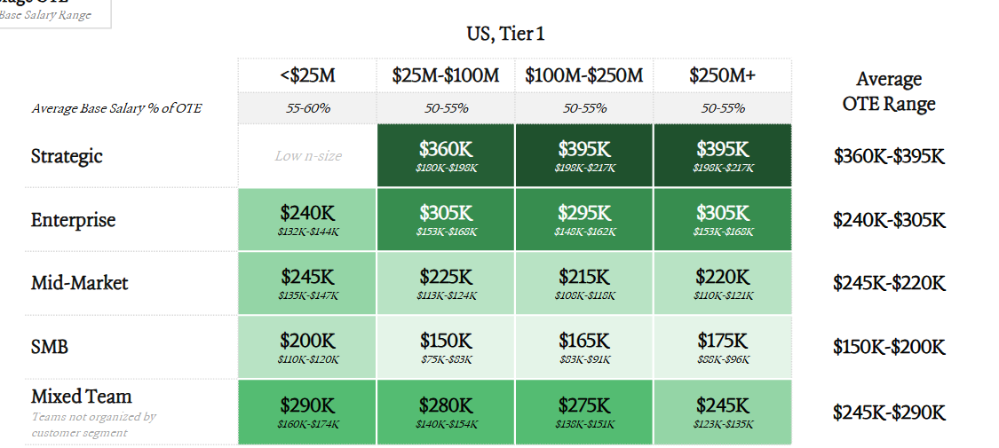 OTE = “on target earnings” is what a sales rep earns if they hit their sales targets at 100% (includes base salary + commission)