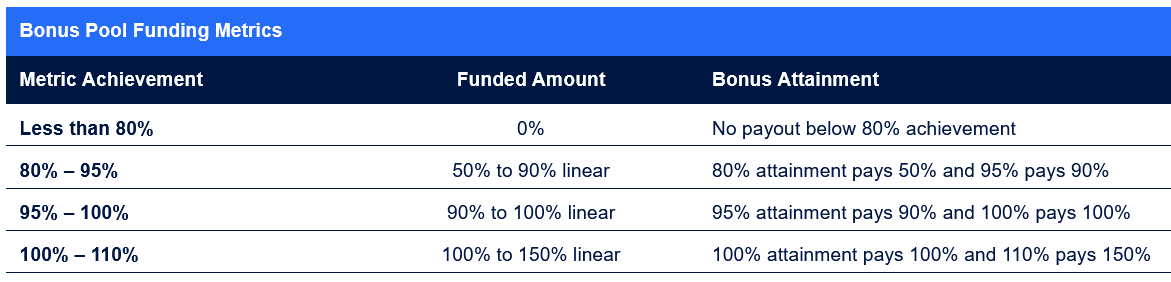 Most exec bonus plans allow for over achievement. Based on the public company examples above, bonus overachievement can range from 120% to 200% of the bonus target.