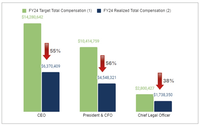 And the equity award performance miss caused a massive hit to their realized compensation.