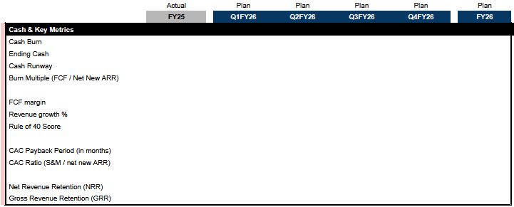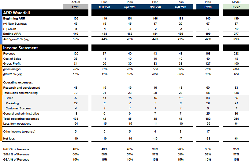 Show Quarterly Numbers: The linearity of growth and spend is important. If spend is front-end loaded while revenue growth is back-end loaded, the plan becomes less believable (and a lot more risky).