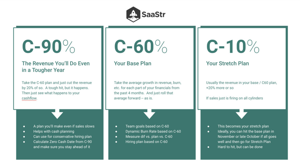 Jason Lemkin talks about building three different plans based on confidence level. This is a good place to start for most companies.