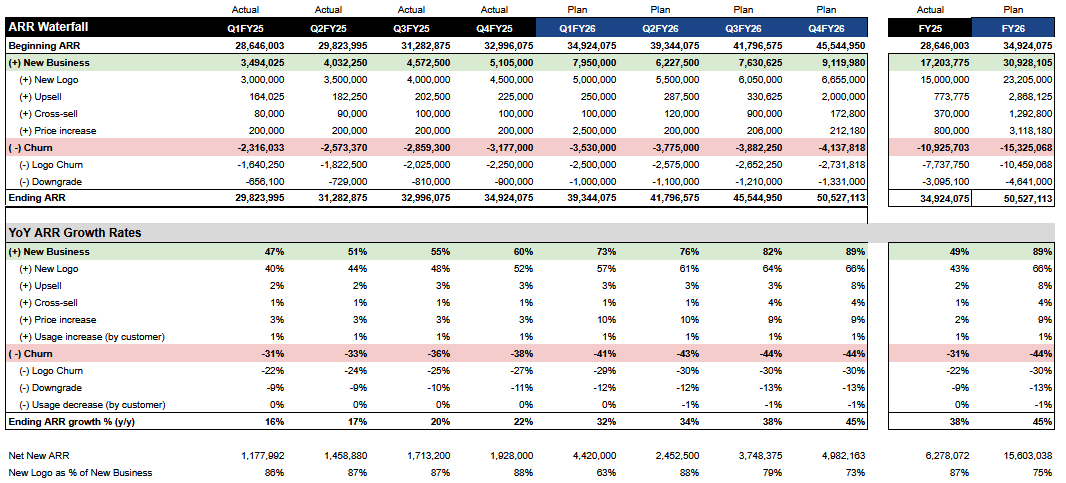 ARR Waterfall: I show a summary ARR waterfall here so you can easily see how it differs from GAAP revenue. Be prepared to answer why!