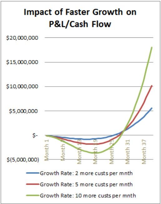 The faster the growth, the worse the free cash flow because of initial CAC investment. The CAC for most companies is greater than one year. So as long as the company is investing in higher revenue growth relative to the base of customers then cash flow will be negative. It’s only at scale when the base of customers is large enough and revenue growth is relatively small that software companies flip to being highly profitable.