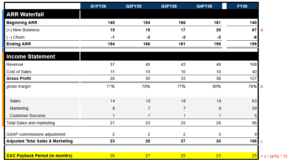 It assumes gross margins will remain the same throughout the payback period. For most software companies this has been a fairly safe assumption, but if you are expecting gross margins to materially change then factor that in. Maybe gross margins will fall as you introduce free AI features?