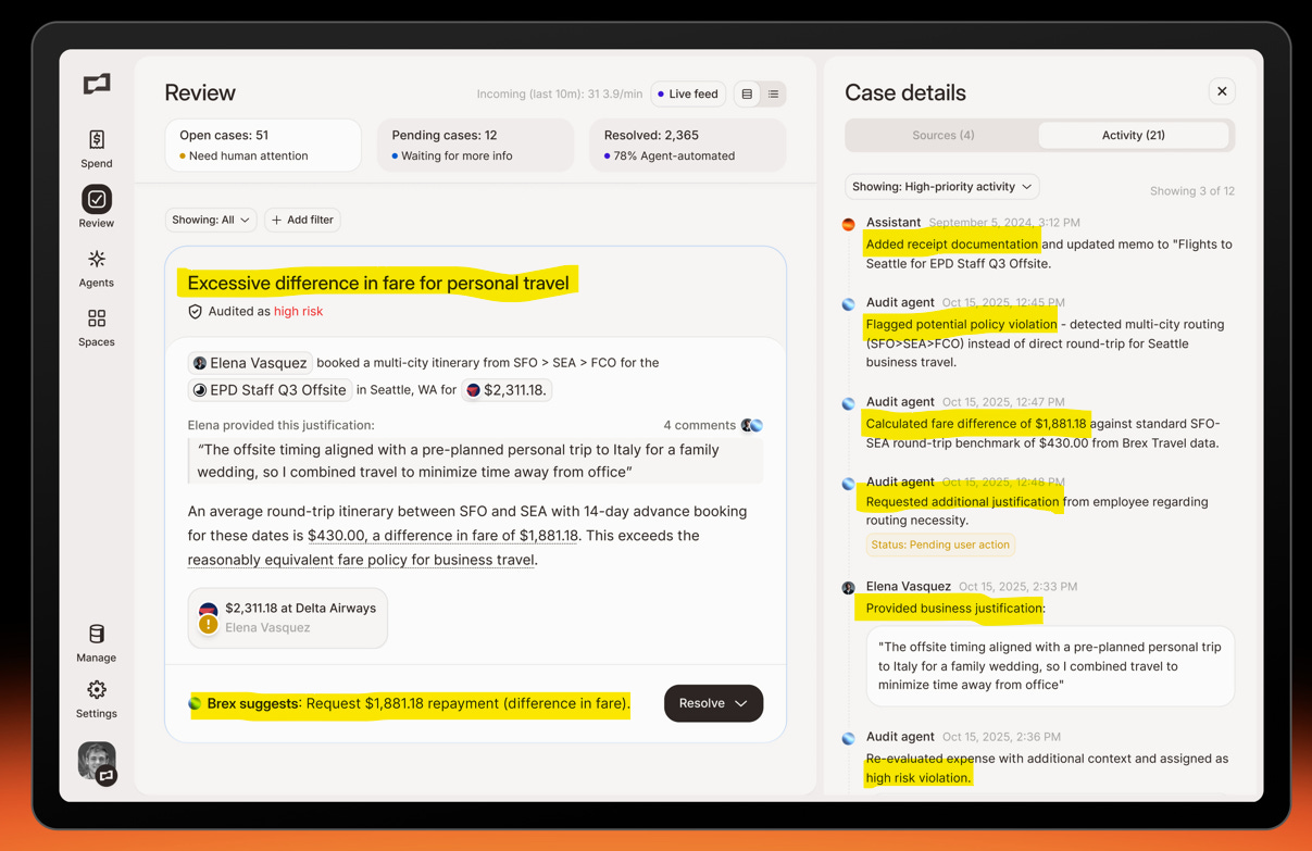 Basically, you have a 24/7 EA (a “Brex Assistant”) that handles all your expenses. Like a human EA, these Expense Agents continually learn.