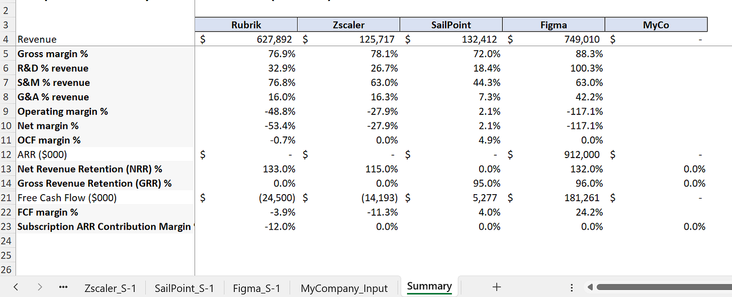 It built all the summary data into one tab with key metrics to compare to your company. Also it had more detail (including all earlier years presented on the S-1).