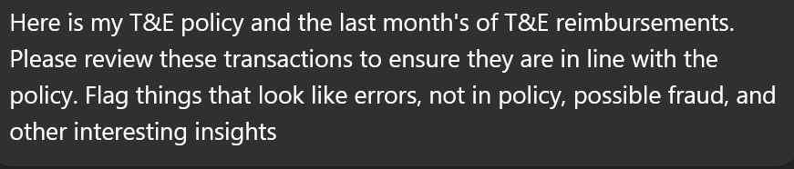 I asked ChatGPT to create a standard T&E policy and then review all my T&E transactions…