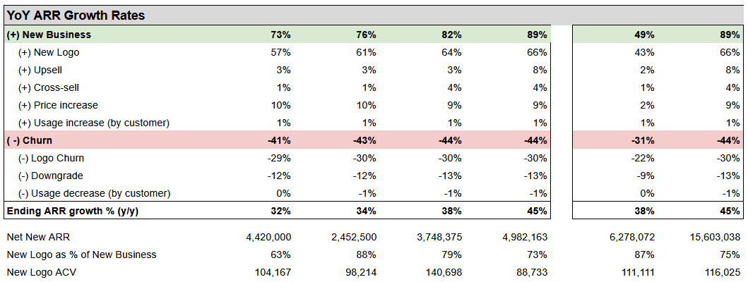 Below is how I break out my ARR waterfall. If you collapse any of these categories, then you lose a lot of relevant information.