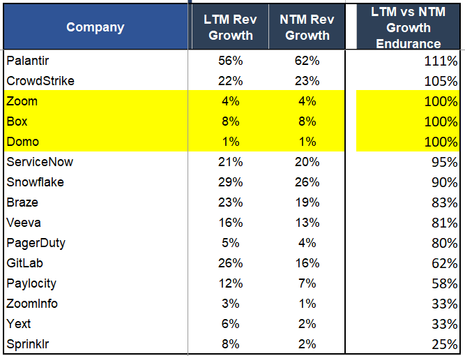 Domo at 100% growth endurance is still lame because it’s based on only 1% revenue growth.