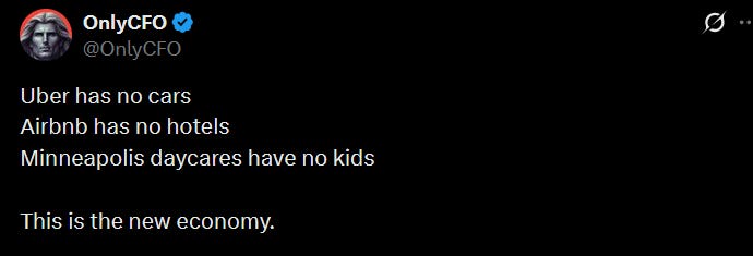 The Minnesota daycare fraud has dominated social media discussions. If you are unfamiliar with the daycare fraud allegations, I think my tweet below summarizes what’s going on. The first two are innovations while the last one is fraud 🤣